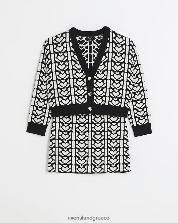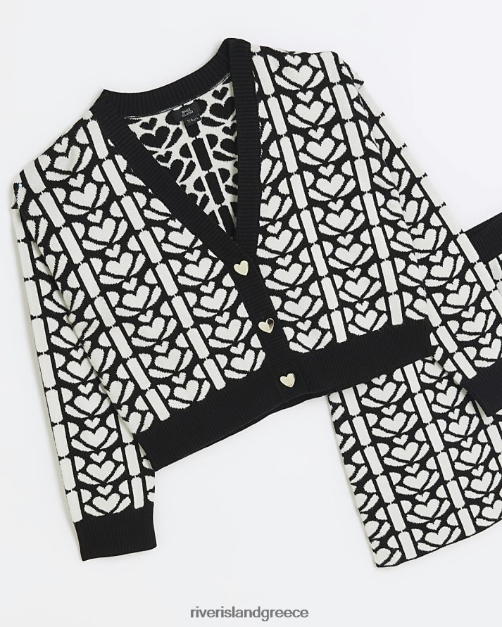 River Island ενδύματα μαύρος κορίτσια Σετ ζακέτα μονόγραμμα g καρδιά B6N8X6210