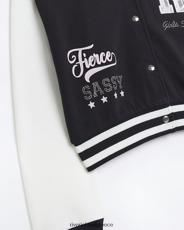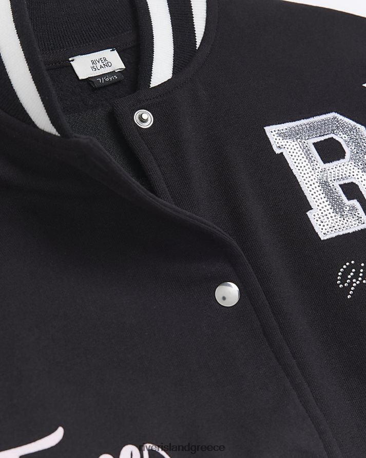 River Island ενδύματα μαύρος κορίτσια g κεντητό τζάκετ varsity bomber B6N8X3409