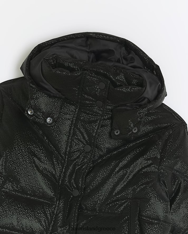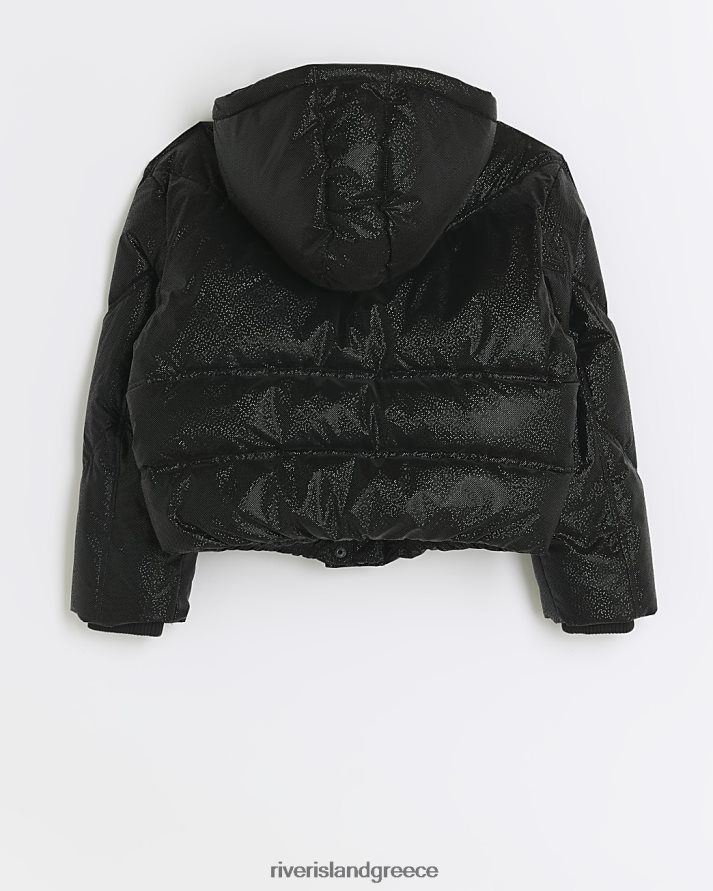 River Island ενδύματα μαύρος κορίτσια g glitter puffer παλτό με κουκούλα B6N8X6126