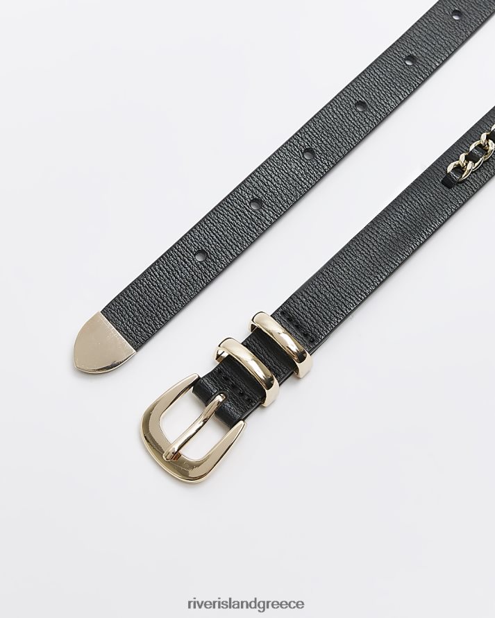 River Island αξεσουάρ μαύρος γυναίκες λεπτομέρεια αλυσίδας στενή ζώνη B6N8X4438
