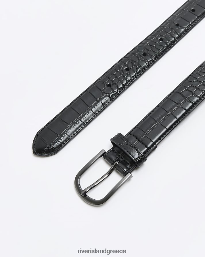 River Island αξεσουάρ μαύρος άνδρες Ζώνη πόρπης με ανάγλυφο κροκό δέρμα B6N8X5417