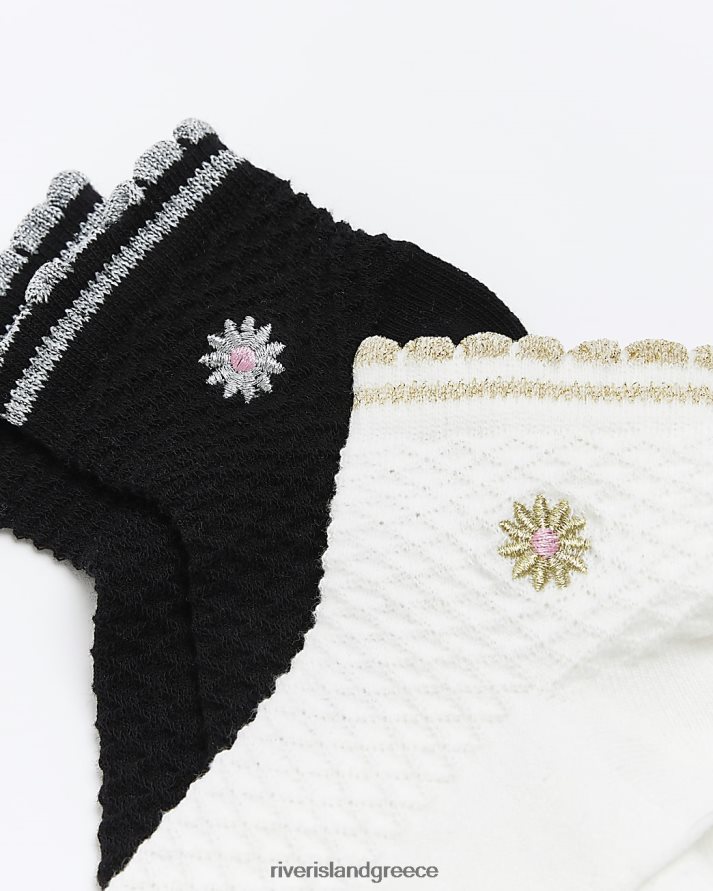 River Island αξεσουάρ κρέμα κορίτσια g κεντητές κάλτσες 2 πακέτο B6N8X6432