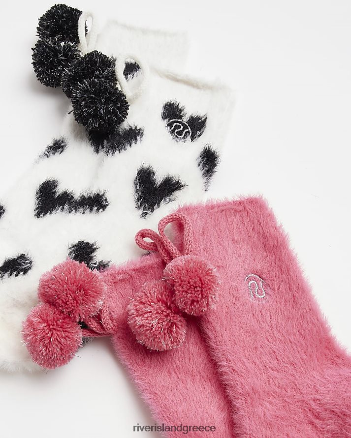 River Island αξεσουάρ ροζ κορίτσια γρ ζεστές κάλτσες καρδιάς 2 πακέτο B6N8X6430