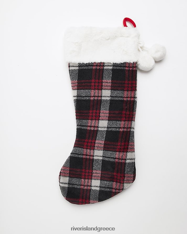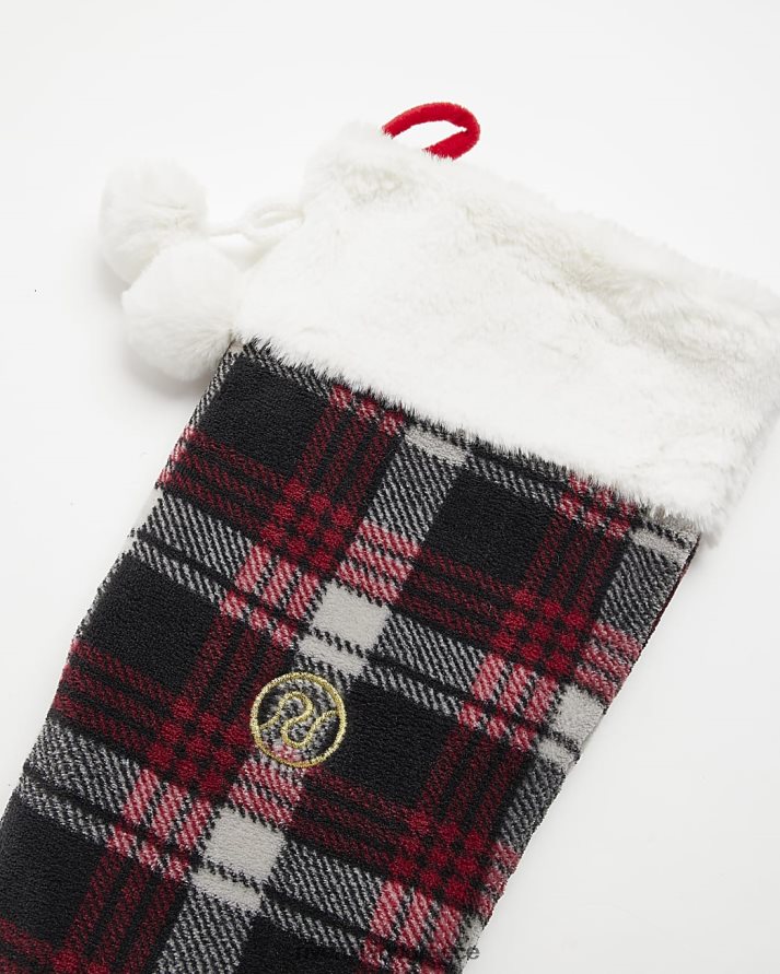 River Island αξεσουάρ το κόκκινο κορίτσια ελέγξτε την οικογενειακή χριστουγεννιάτικη κάλτσα με ψεύτικη γούνα B6N8X6439