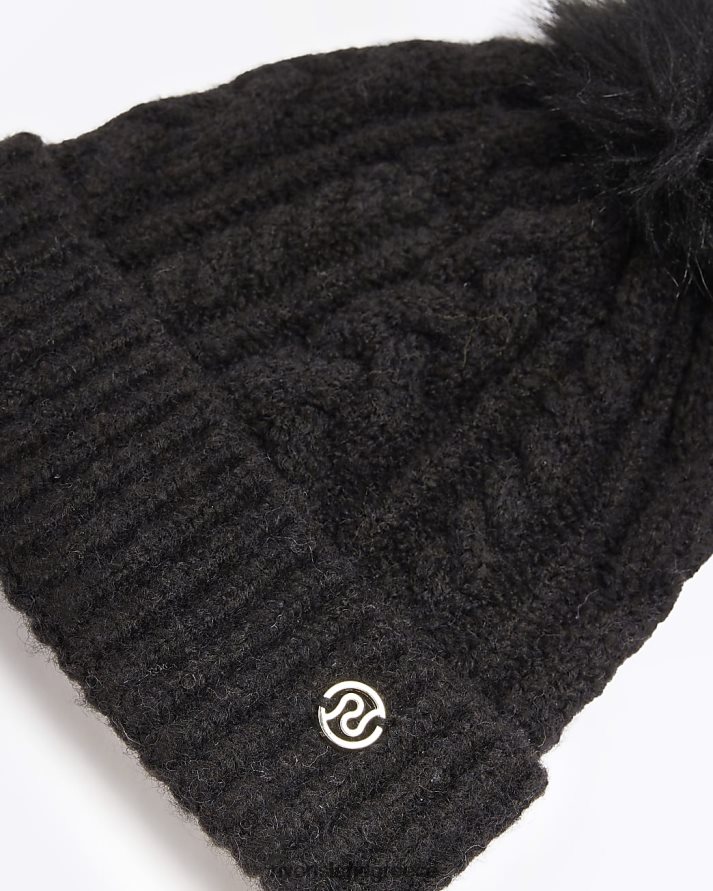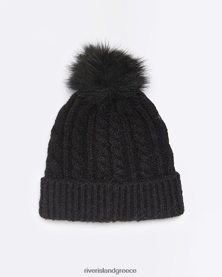 River Island αξεσουάρ μαύρος γυναίκες πλεκτό καπέλο με καλώδιο πομ πον B6N8X4913