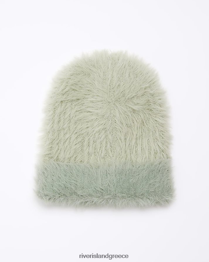 River Island αξεσουάρ πράσινος γυναίκες αφράτο καπέλο rib beanie B6N8X608