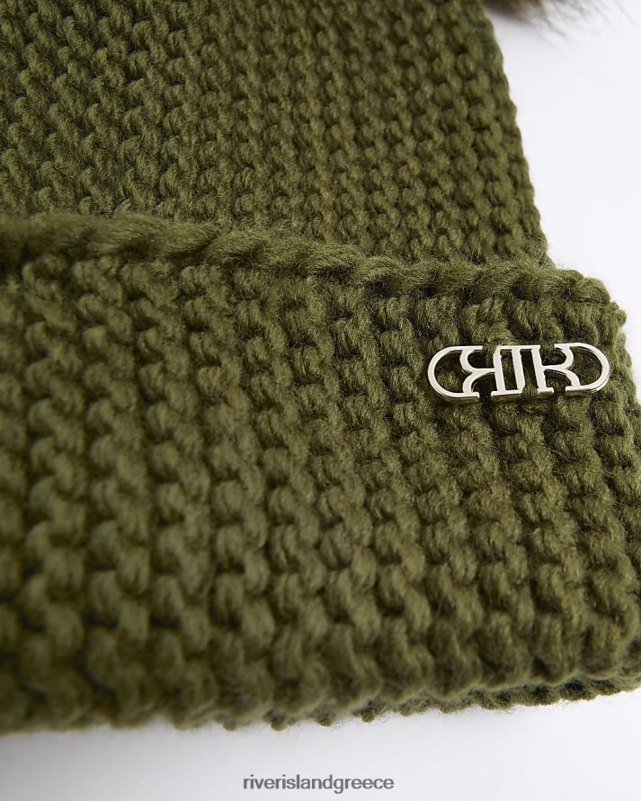 River Island αξεσουάρ χακί γυναίκες διπλό πον πομ μπανί B6N8X867