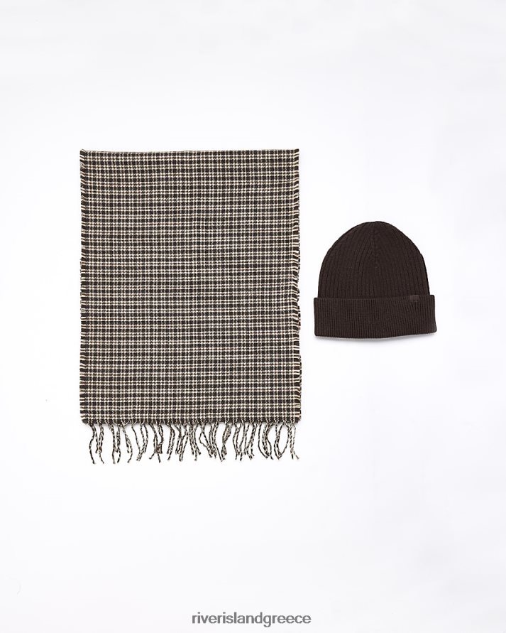 River Island αξεσουάρ καφέ άνδρες Σετ δώρου κασκόλ με κουκούτσι και λαγωνικό B6N8X5559