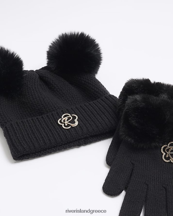 River Island αξεσουάρ μαύρος κορίτσια Σετ καπέλων g pom pom B6N8X6452