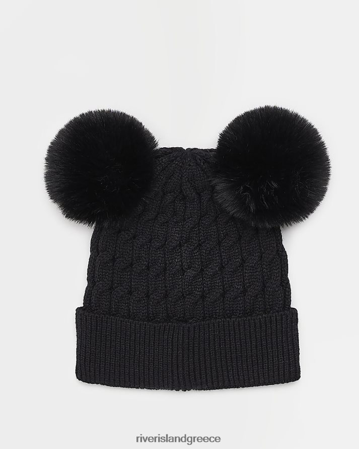 River Island αξεσουάρ μαύρος κορίτσια g καπέλο διπλό πομ πομ μπανί B6N8X3431