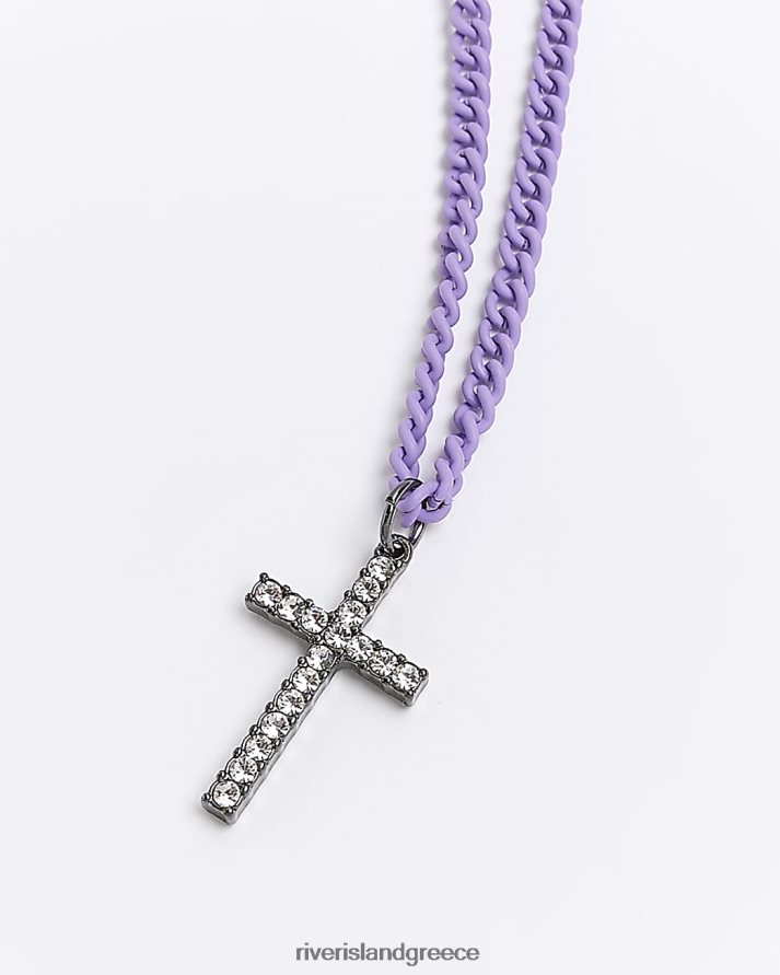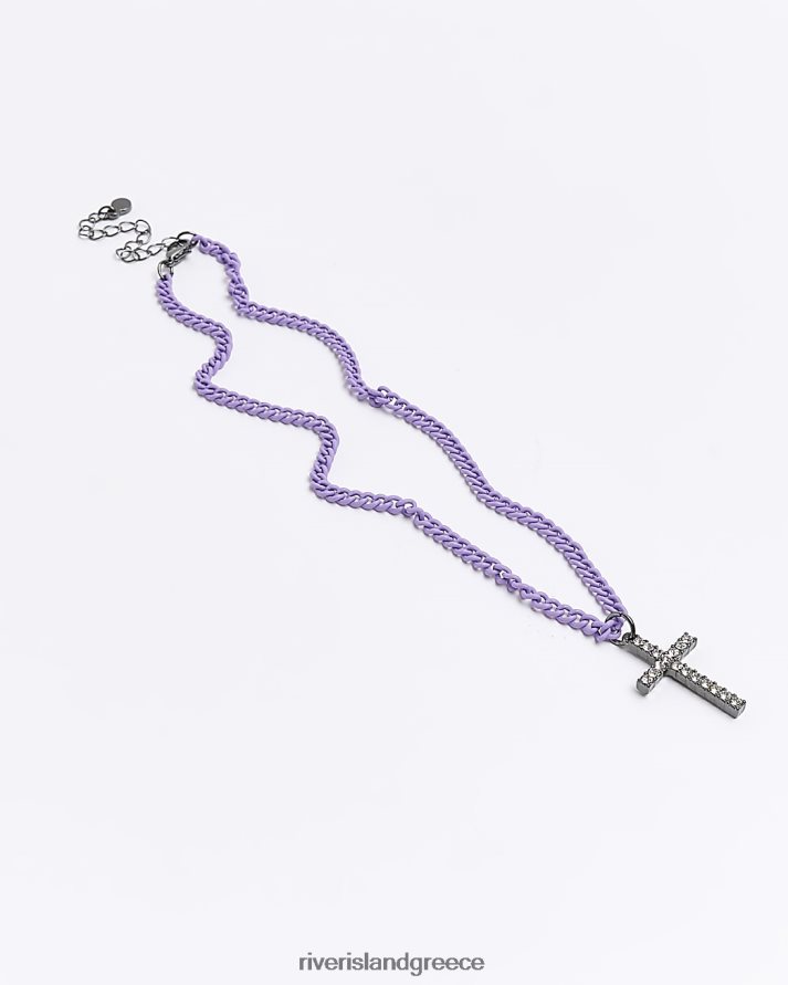 River Island αξεσουάρ μωβ κορίτσια g diamante σταυρός κρεμαστό κολιέ B6N8X6411
