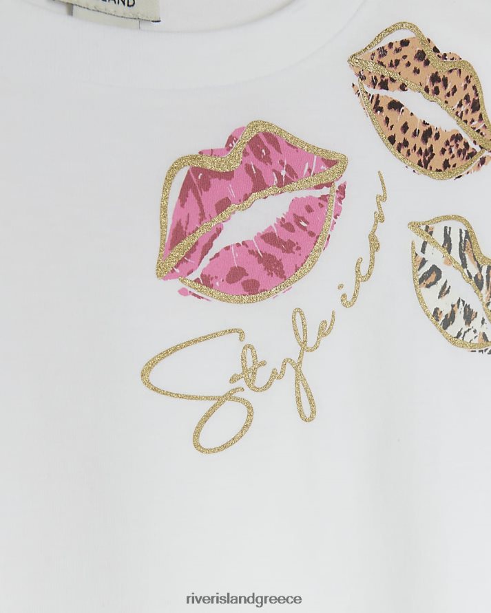 River Island ενδύματα άσπρο κορίτσια g γραφικό μπλουζάκι για χείλη B6N8X6035