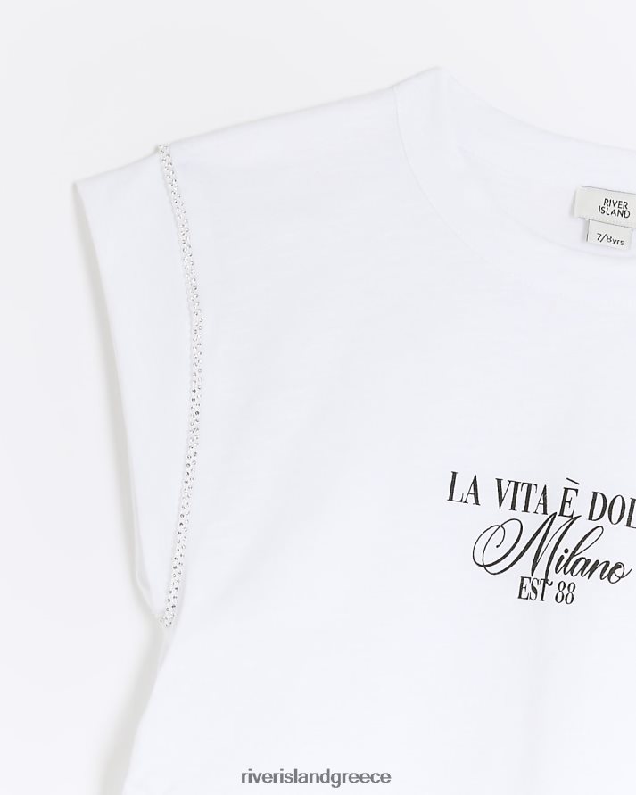 River Island ενδύματα άσπρο κορίτσια g diamante διακοσμητικό μπλουζάκι B6N8X3295