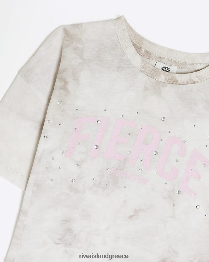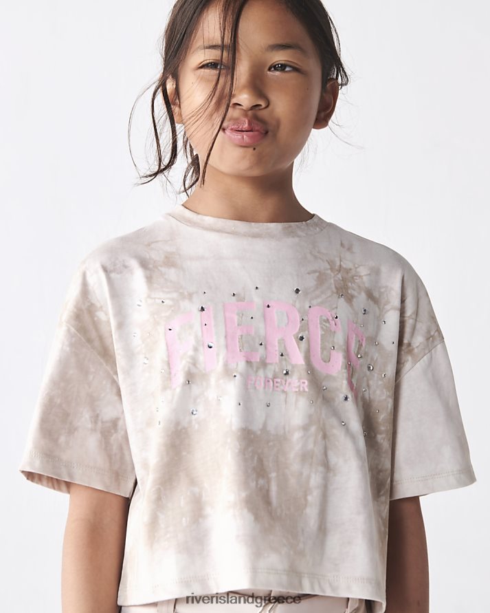 River Island ενδύματα καφέ κορίτσια ζ στολισμένο μπλουζάκι γραβάτα βαφής B6N8X6125