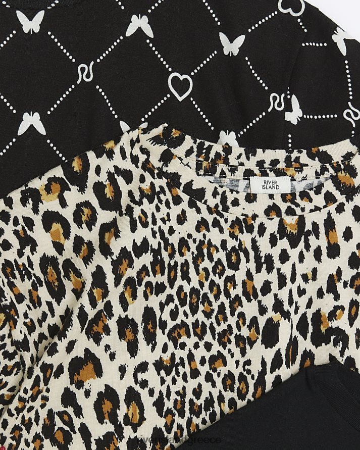 River Island ενδύματα μαύρος κορίτσια g πολλαπλή συσκευασία t-shirt με λεοπάρ B6N8X6316