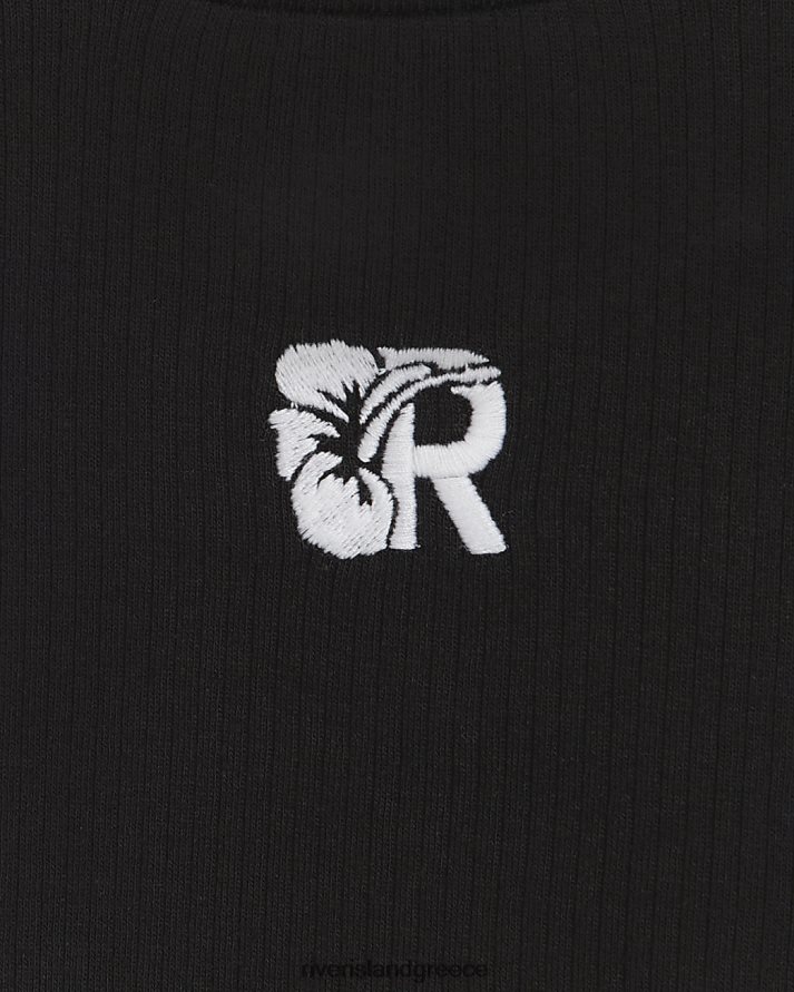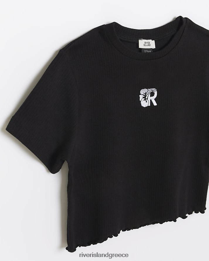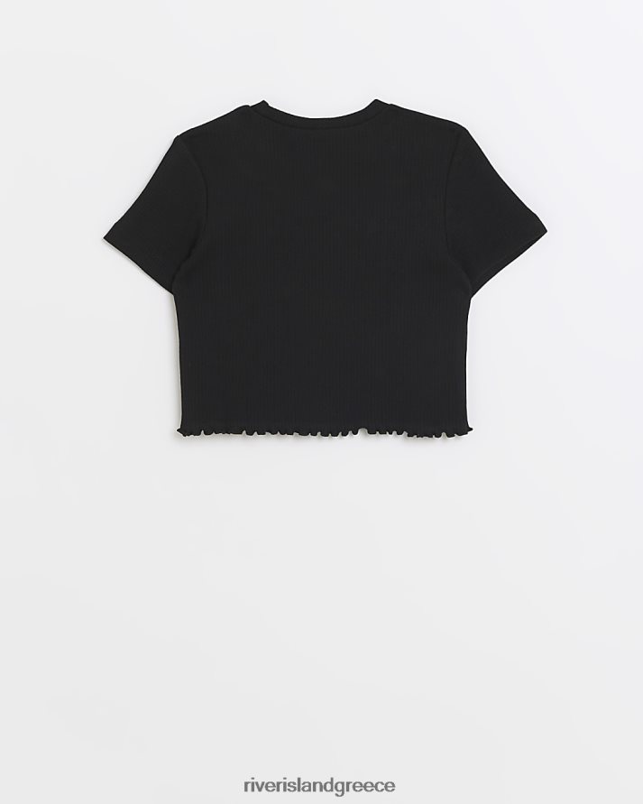 River Island ενδύματα μαύρος κορίτσια g crop μπλουζάκι με ραβδώσεις με βολάν B6N8X6339