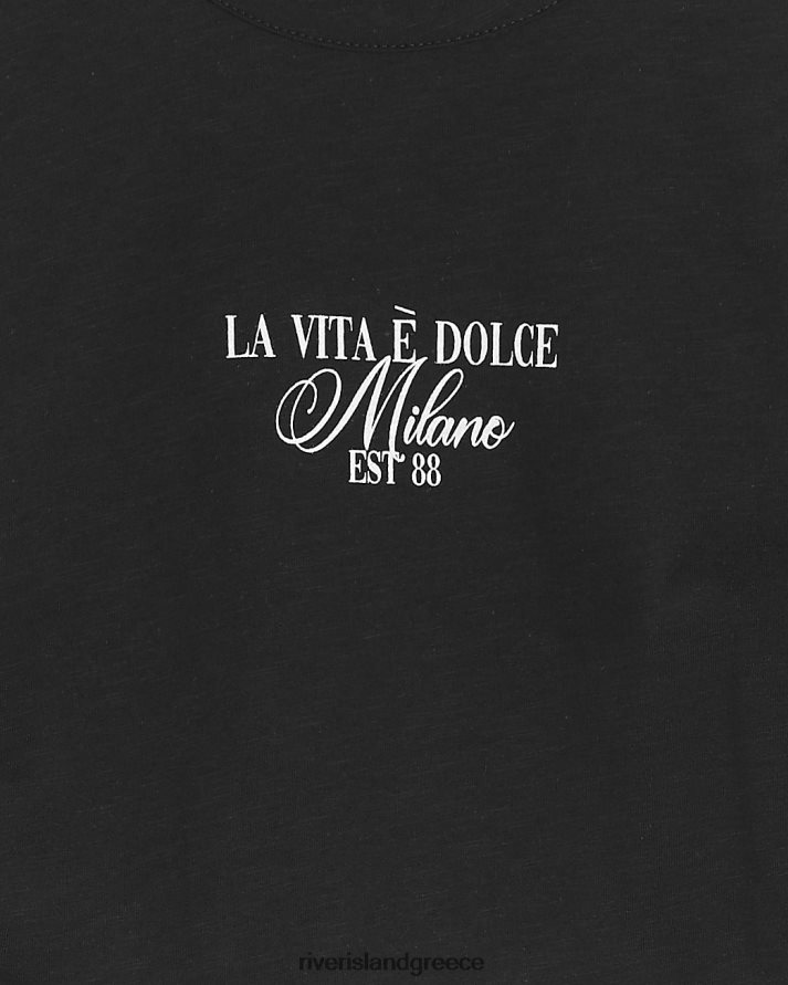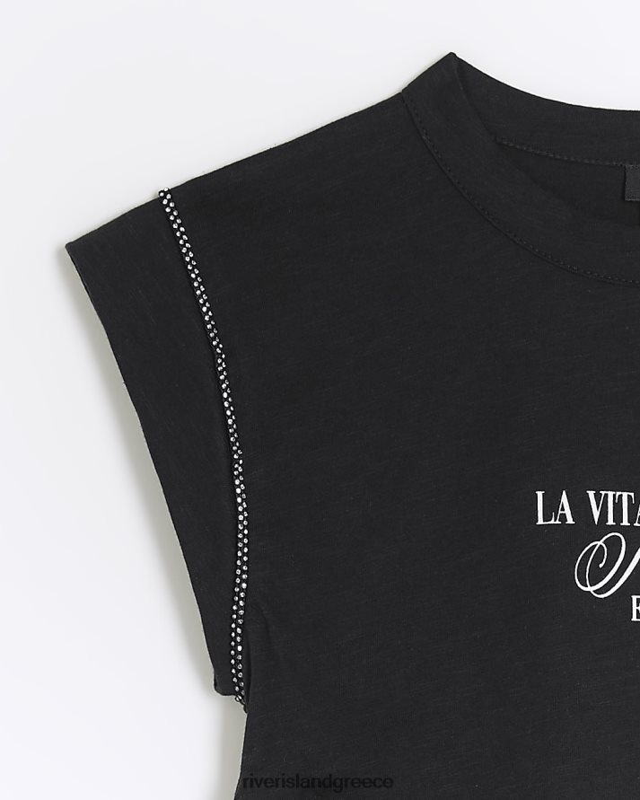 River Island ενδύματα μαύρος κορίτσια g diamante διακοσμητικό μπλουζάκι B6N8X3294