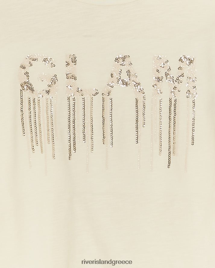 River Island ενδύματα πέτρα κορίτσια t-shirt με παγιέτες B6N8X6041