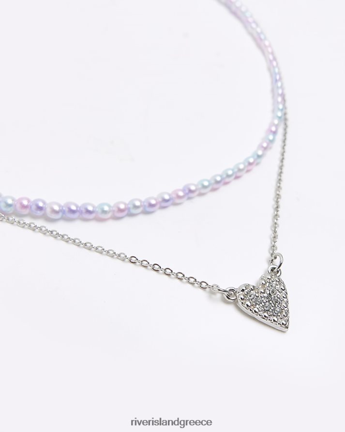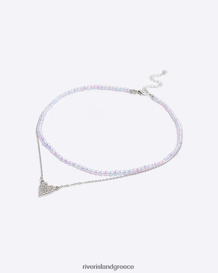 River Island αξεσουάρ ασήμι κορίτσια g χρωματιστό κολιέ με χάντρες καρδιά B6N8X6412