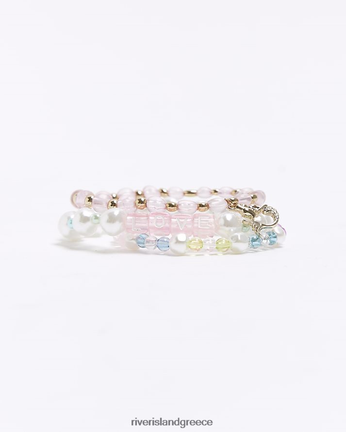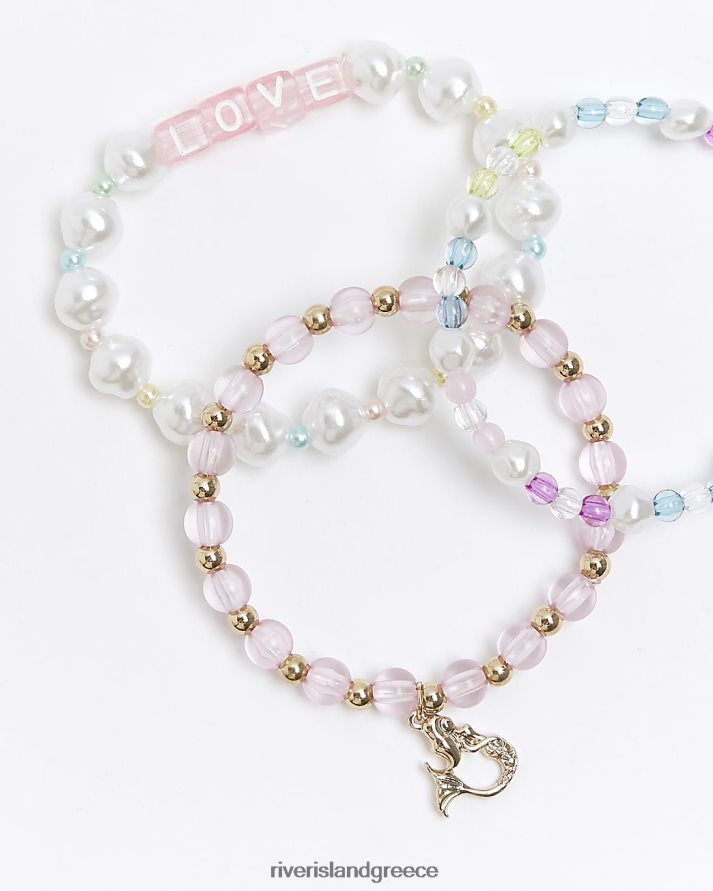 River Island αξεσουάρ λευκό/ροζ κορίτσια βραχιόλια με χάντρες 3 συσκευασιών B6N8X6447