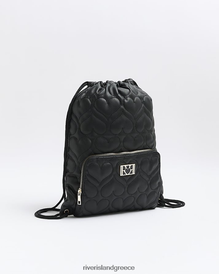 River Island αξεσουάρ μαύρος κορίτσια g καρδιά καπιτονέ κορδόνι τσάντα B6N8X6250