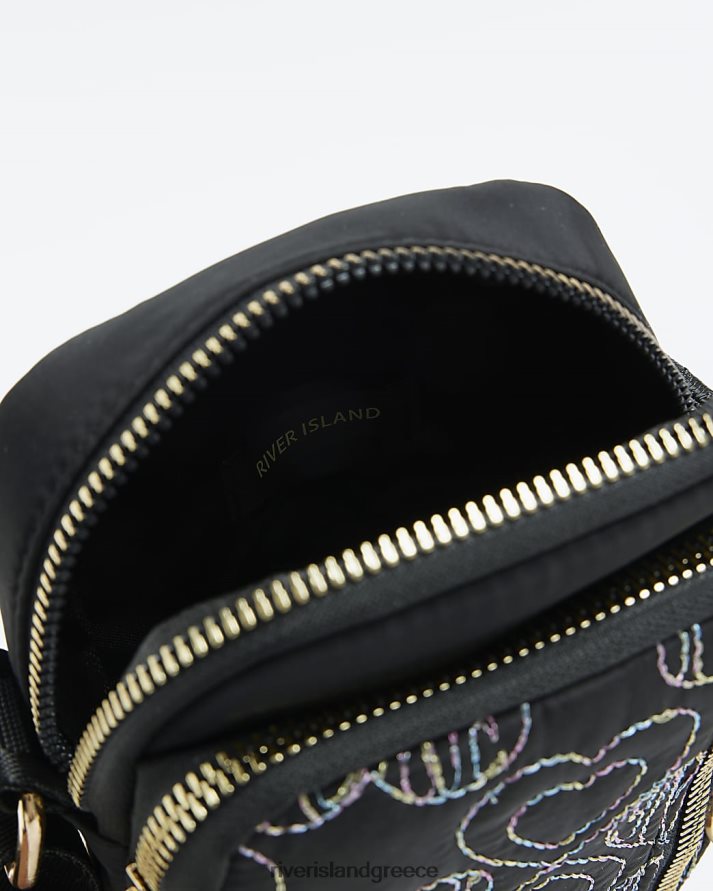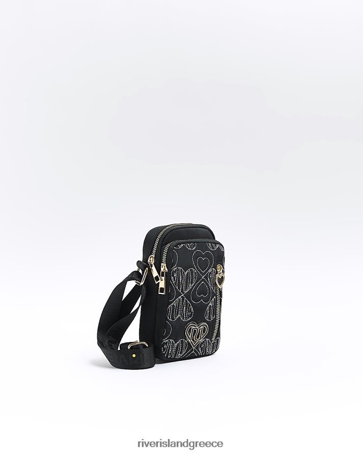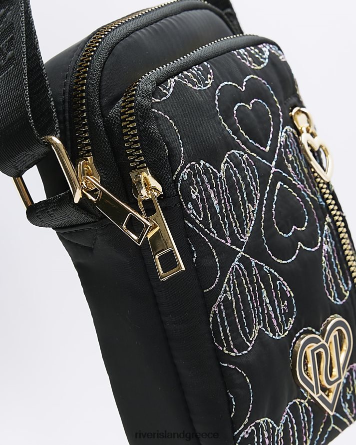 River Island αξεσουάρ μαύρος κορίτσια g κεντημένη τσάντα χιαστί καρδιά B6N8X3381