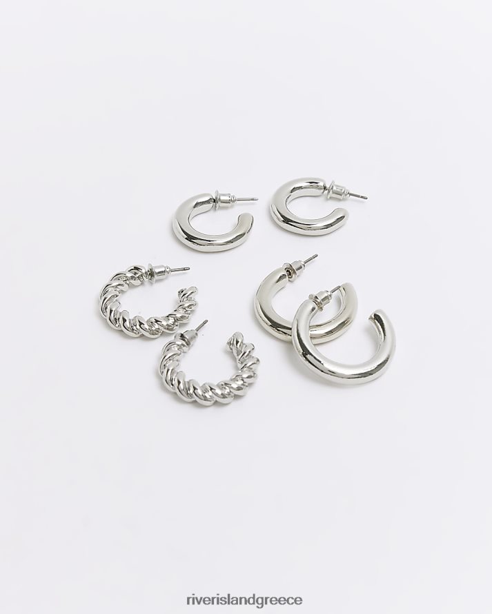 River Island αξεσουάρ ασήμι γυναίκες σκουλαρίκια κρίκοι πολλαπλής συσκευασίας B6N8X4104