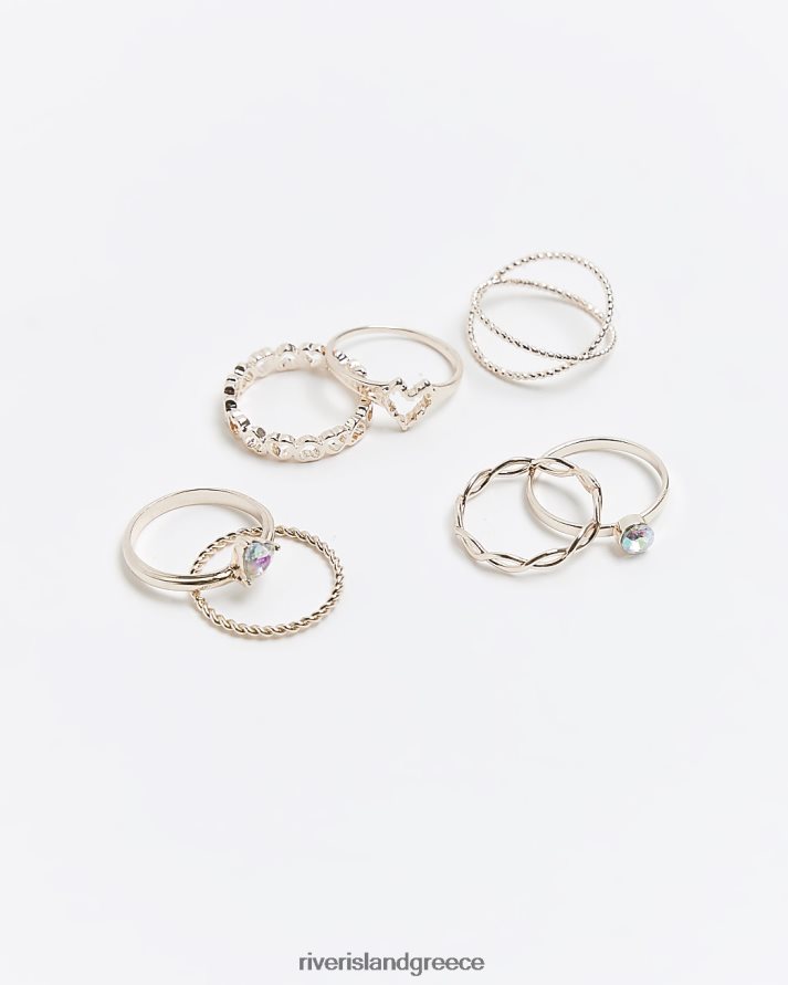 River Island αξεσουάρ ροζ χρυσός γυναίκες πέτρινο δαχτυλίδι με λεπτομέρεια πολυσυσκευασία B6N8X4280