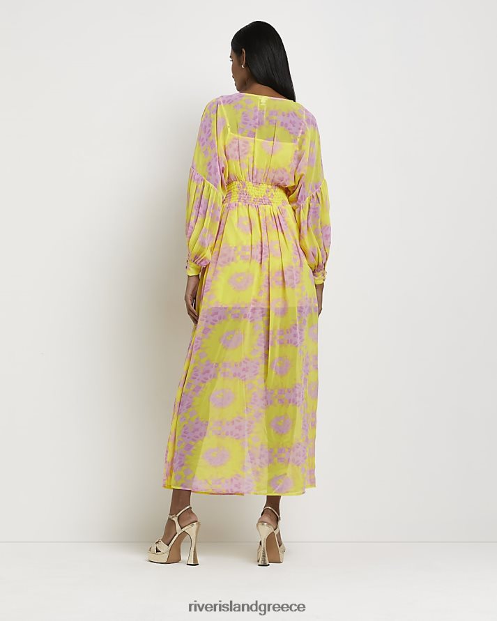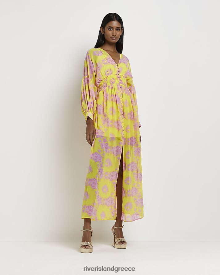 River Island ενδύματα κίτρινος γυναίκες εμπριμέ μάξι πουκάμισο φόρεμα B6N8X2196