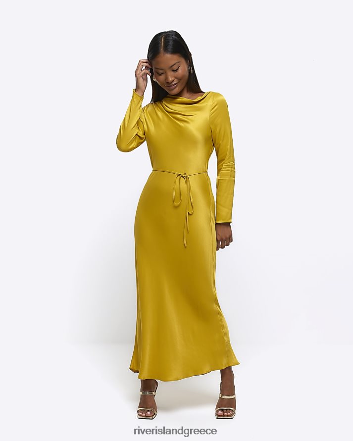 River Island ενδύματα κίτρινος γυναίκες petite σατέν μάξι φόρεμα B6N8X5255