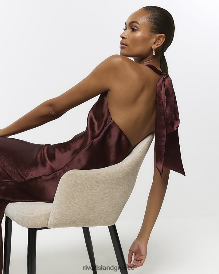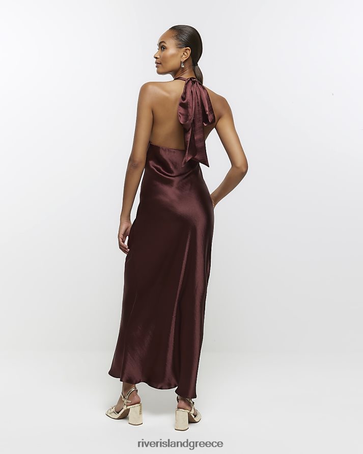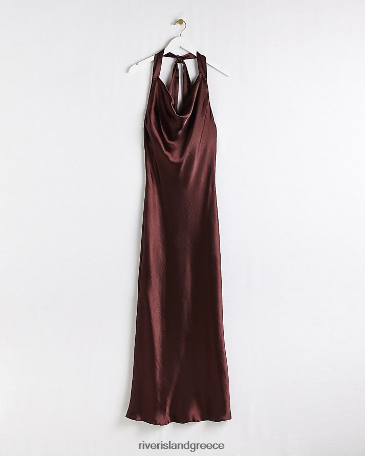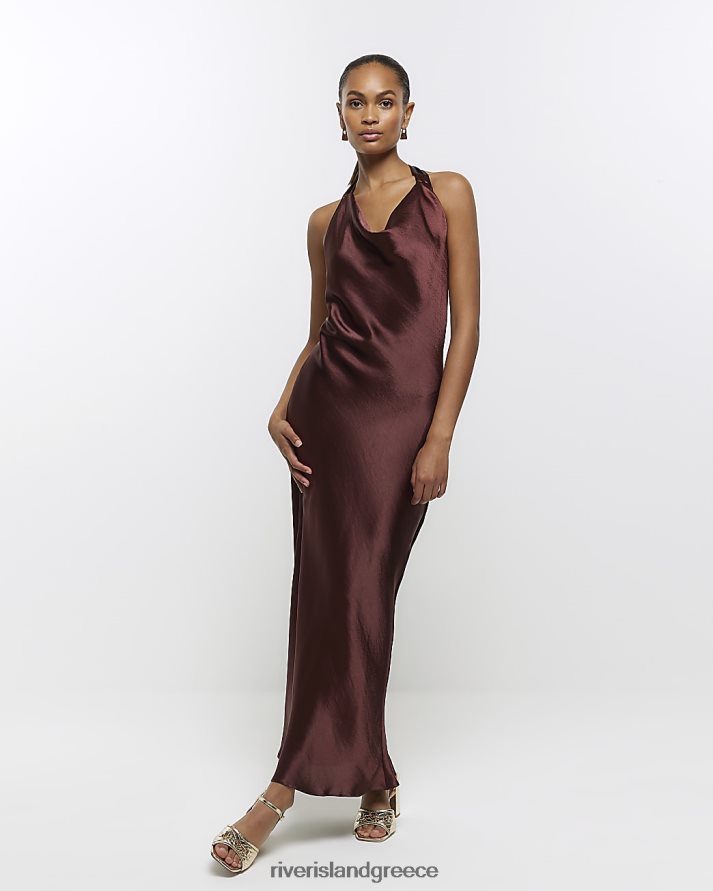 River Island ενδύματα καφέ γυναίκες σατέν μάξι φόρεμα με λαιμόκοψη B6N8X4193