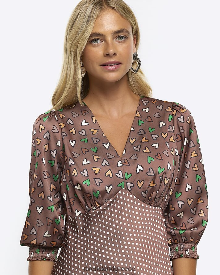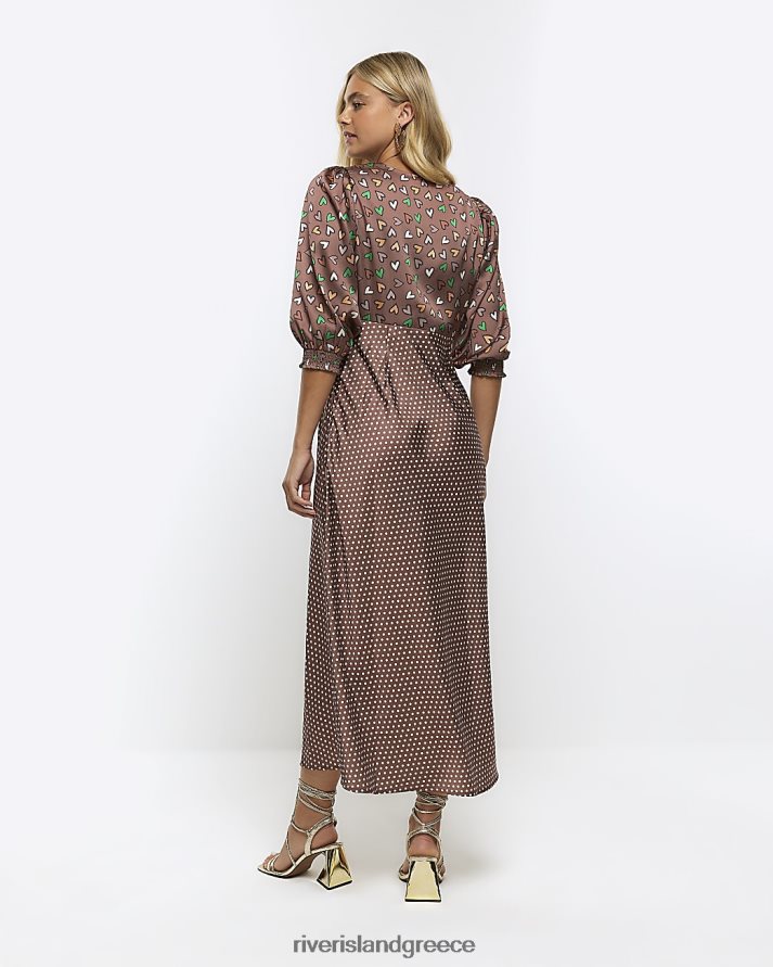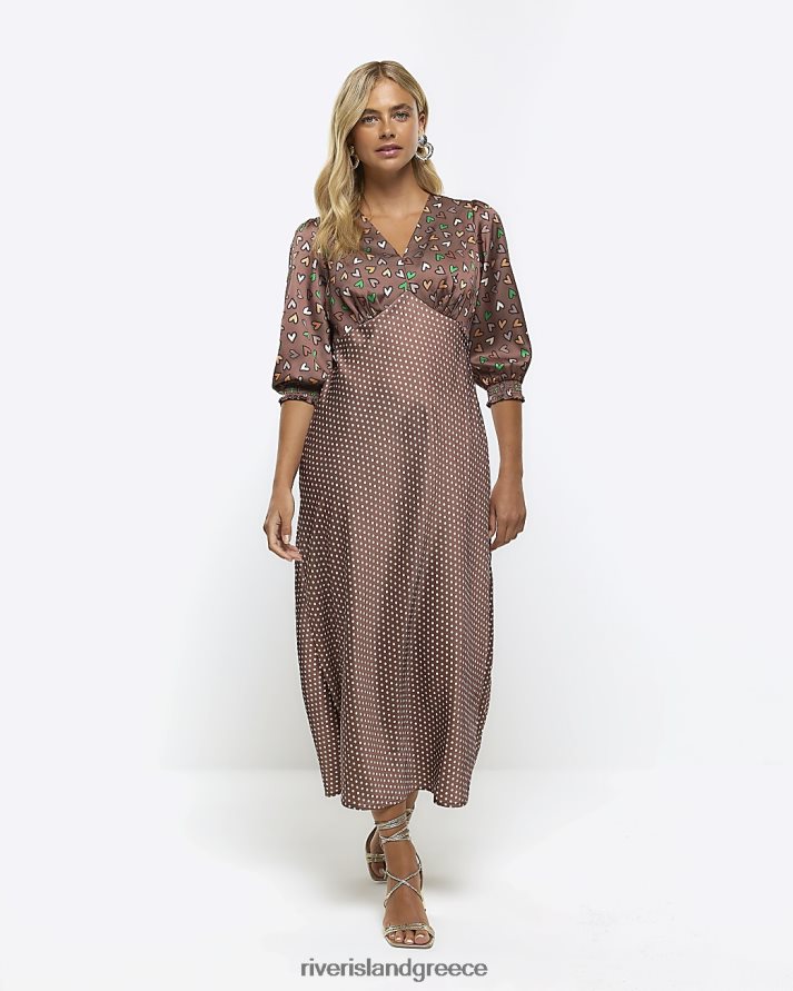 River Island ενδύματα καφέ γυναίκες σατέν μάξι φόρεμα swing B6N8X4577