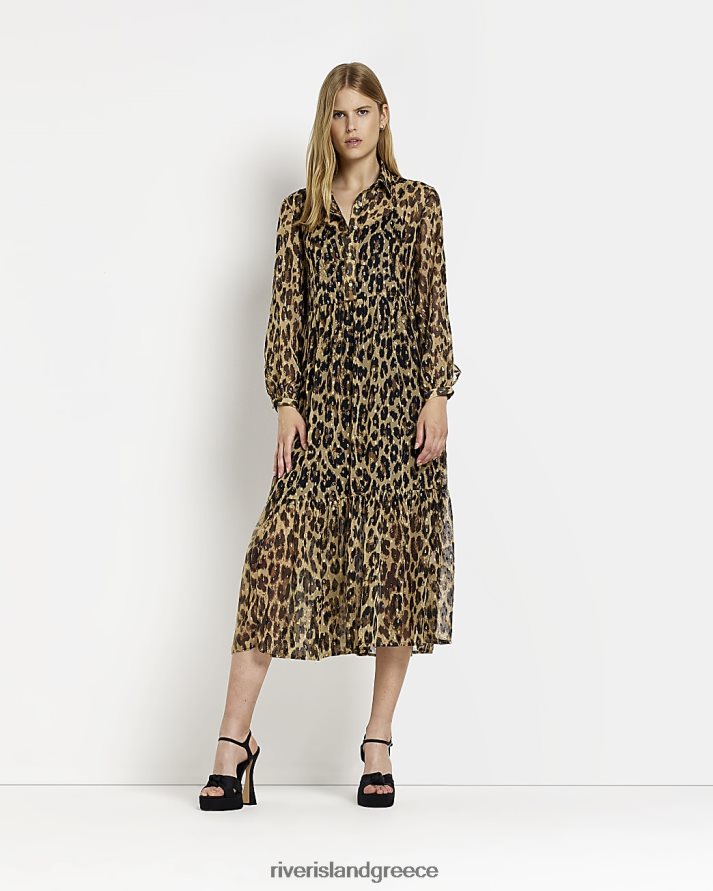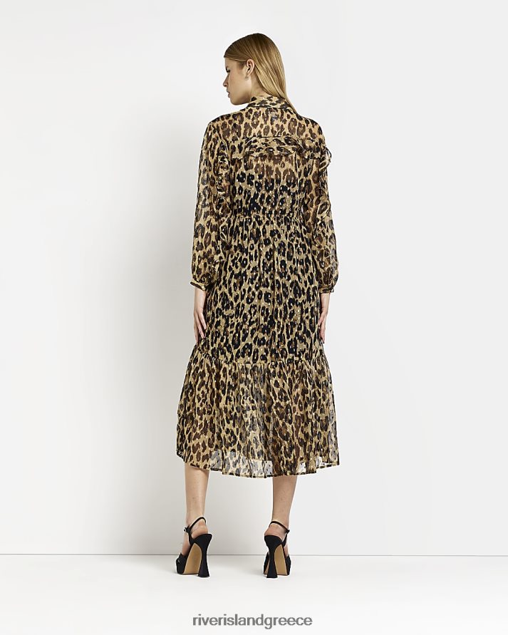 River Island ενδύματα καφέ γυναίκες σιφόν animal print μάξι φόρεμα πουκάμισο B6N8X1863