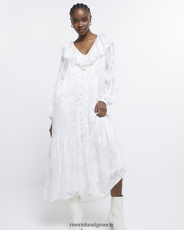 River Island ενδύματα κρέμα γυναίκες βολάν smock μάξι φόρεμα B6N8X1741