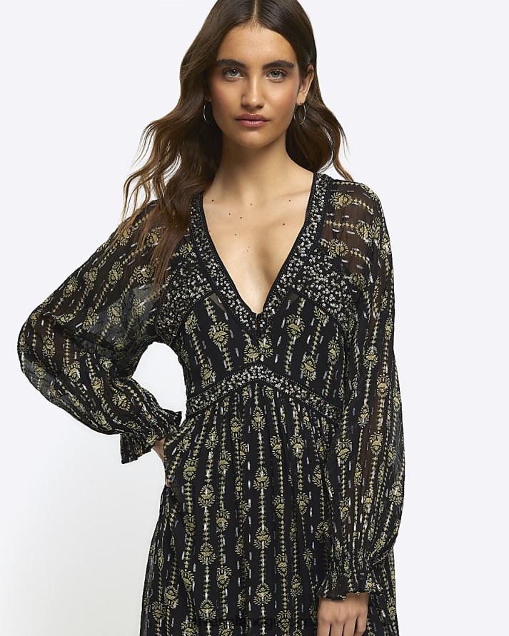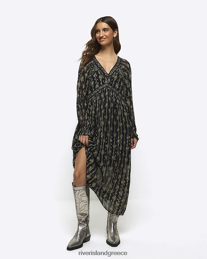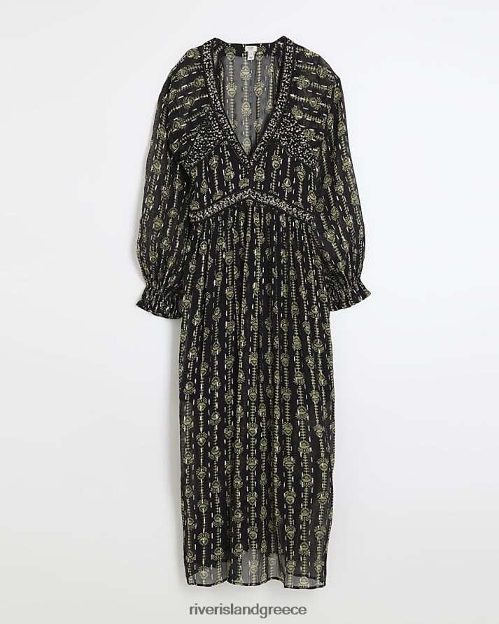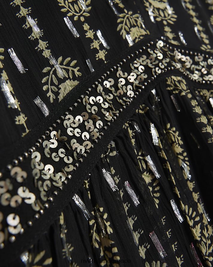 River Island ενδύματα μαύρος γυναίκες διακοσμημένο μάξι φόρεμα B6N8X4309