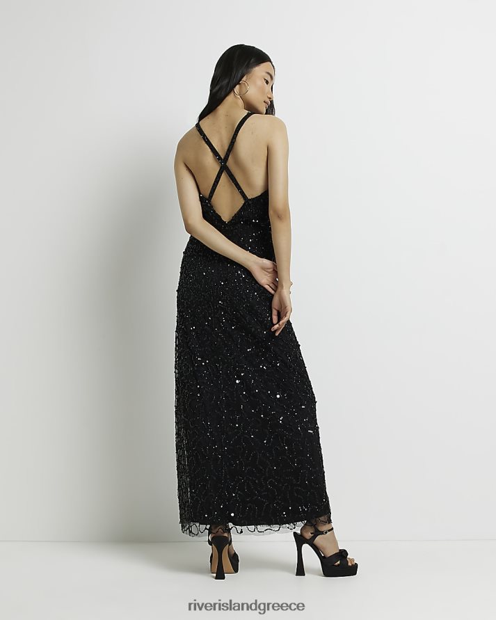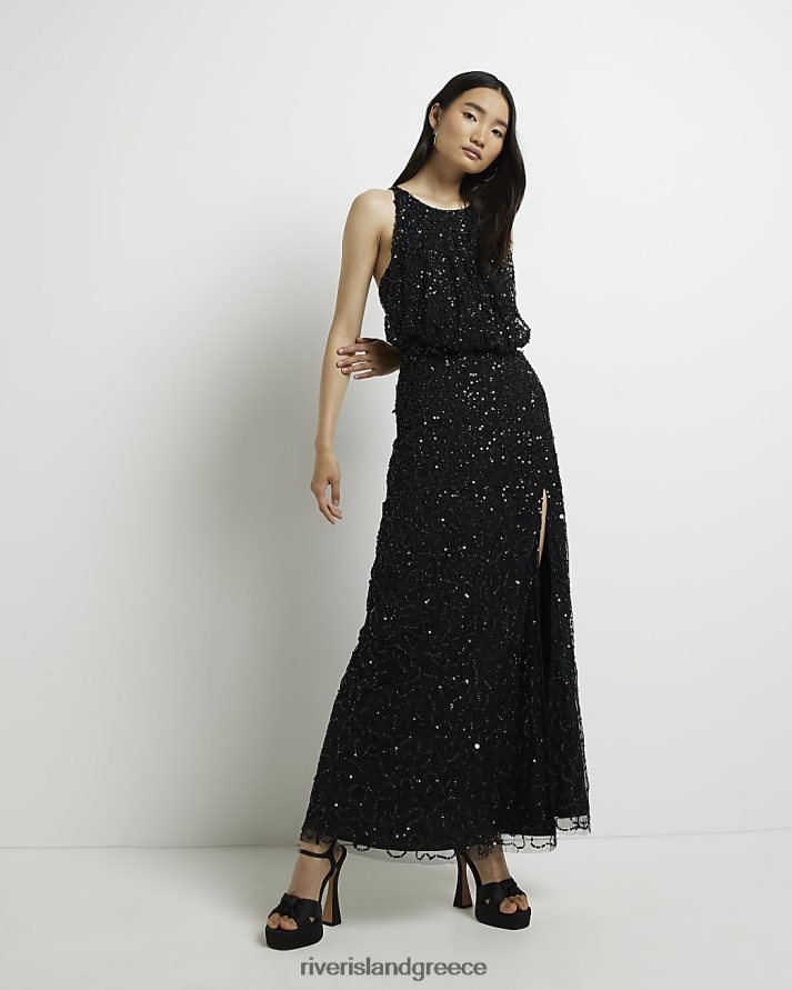 River Island ενδύματα μαύρος γυναίκες μάξι φόρεμα με παγιέτες με λαιμόκοψη B6N8X2057