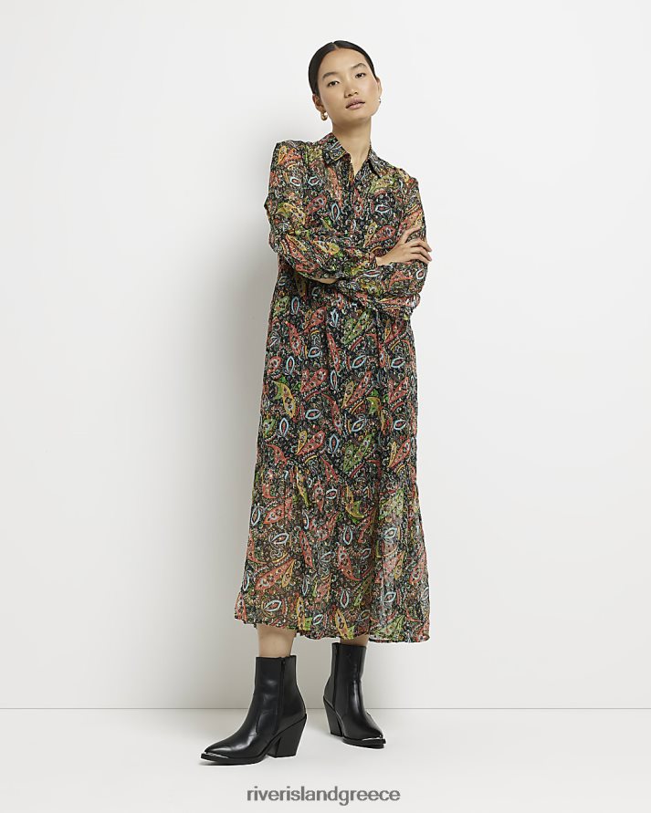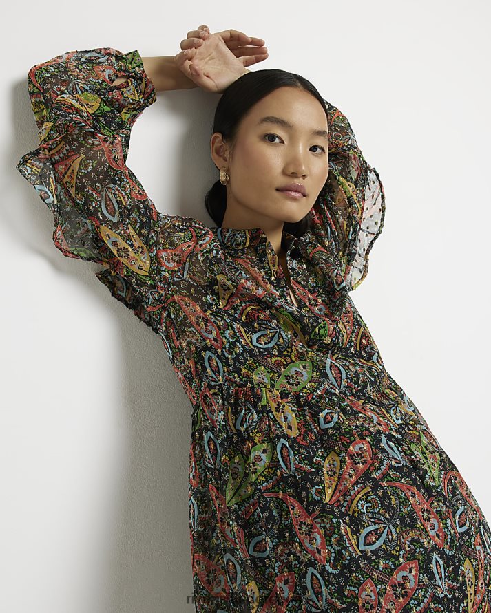 River Island ενδύματα μαύρος γυναίκες μακρυμάνικο μάξι φόρεμα σιφόν paisley B6N8X1864