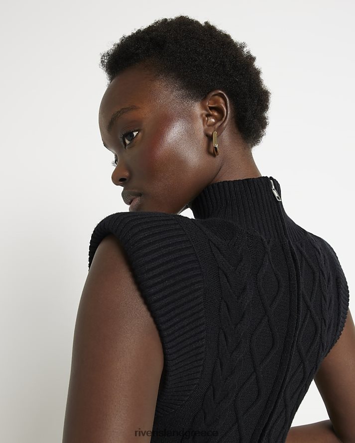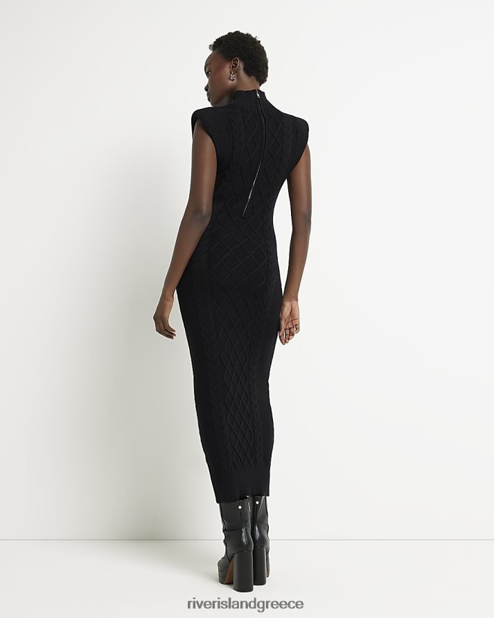 River Island ενδύματα μαύρος γυναίκες πλεκτό μάξι φόρεμα από καλώδιο B6N8X2118