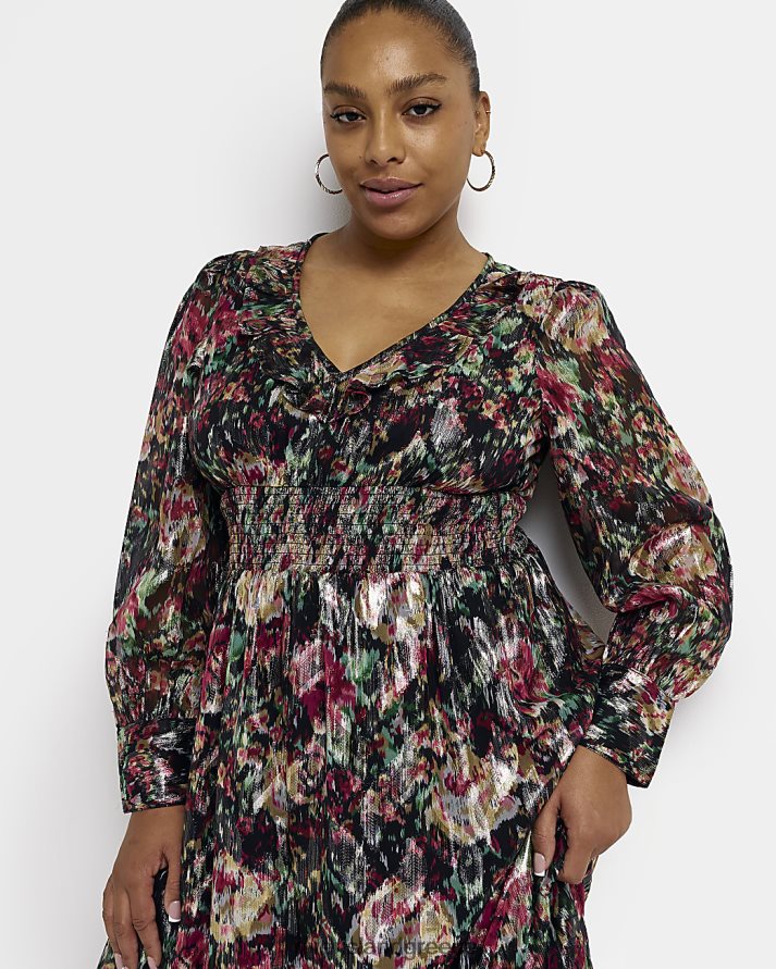 River Island ενδύματα μαύρος γυναίκες συν λουλουδάτο μάξι φόρεμα B6N8X5180