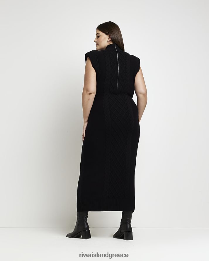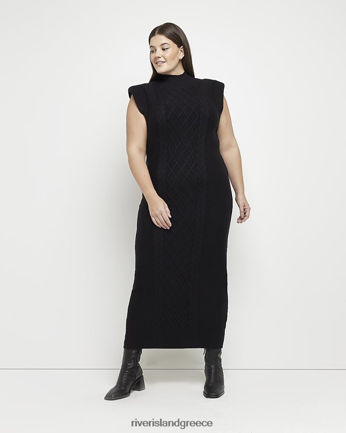 River Island ενδύματα μαύρος γυναίκες συν πλεκτό μάξι φόρεμα από καλώδιο B6N8X5190