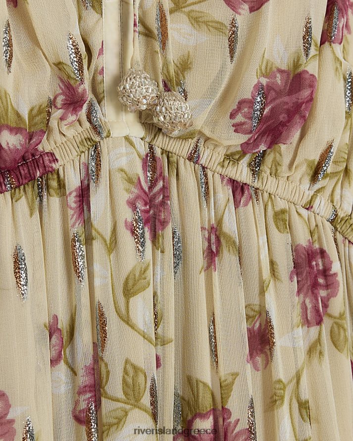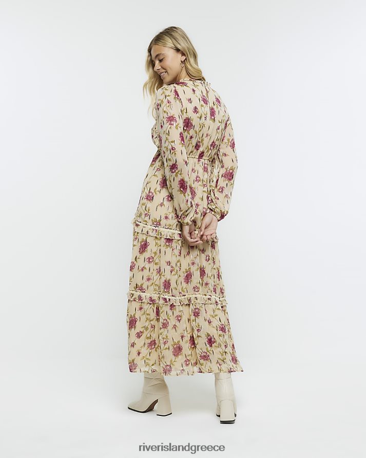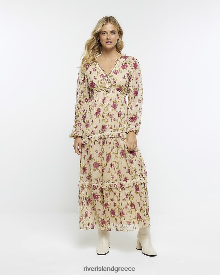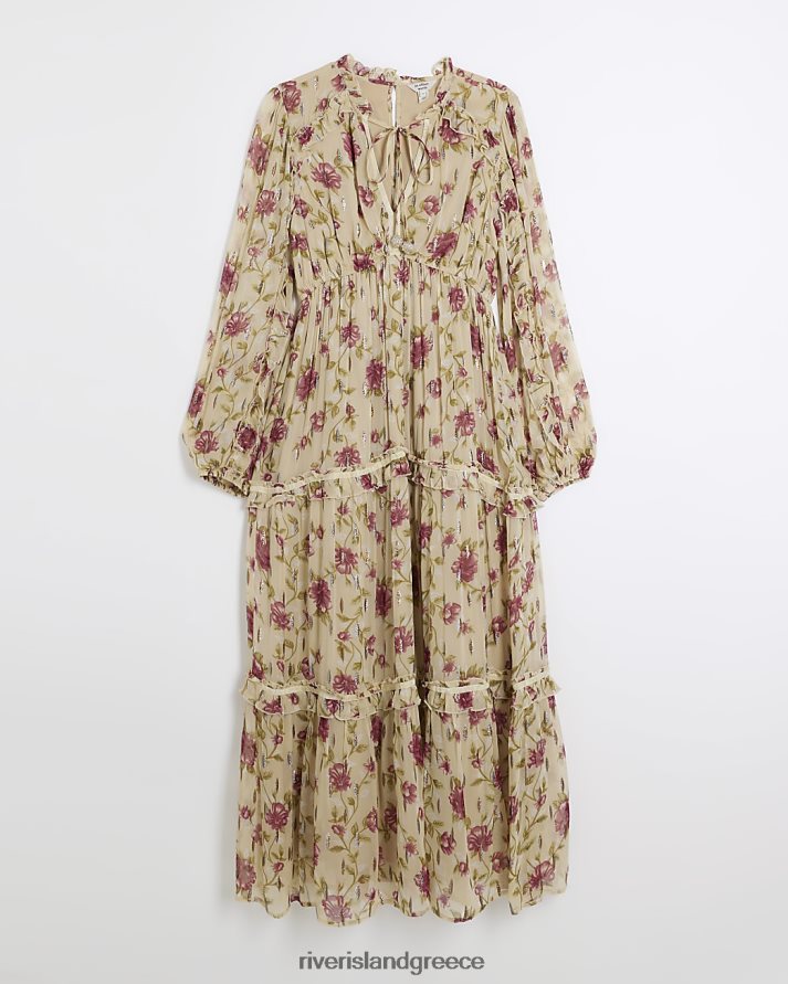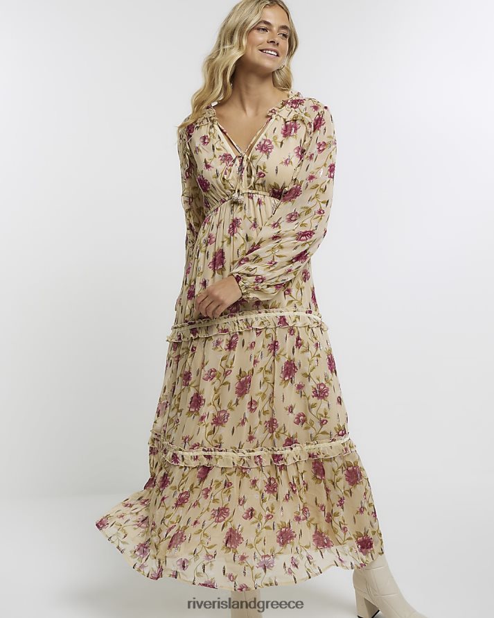 River Island ενδύματα μπεζ γυναίκες floral μακρυμάνικο swing μάξι φόρεμα B6N8X3720