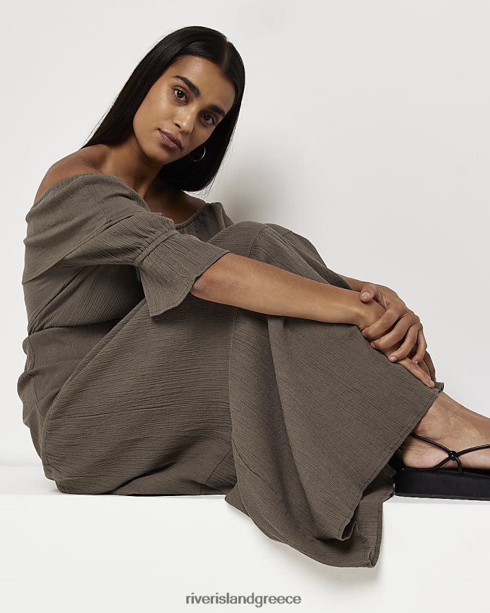 River Island ενδύματα πέτρα γυναίκες μάξι φόρεμα bardot B6N8X1945