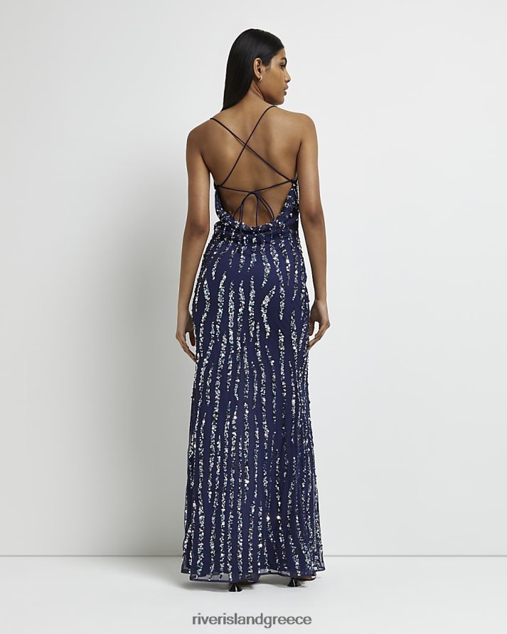 River Island ενδύματα ΠΟΛΕΜΙΚΟ ΝΑΥΤΙΚΟ γυναίκες μάξι φόρεμα με παγιέτες B6N8X2165