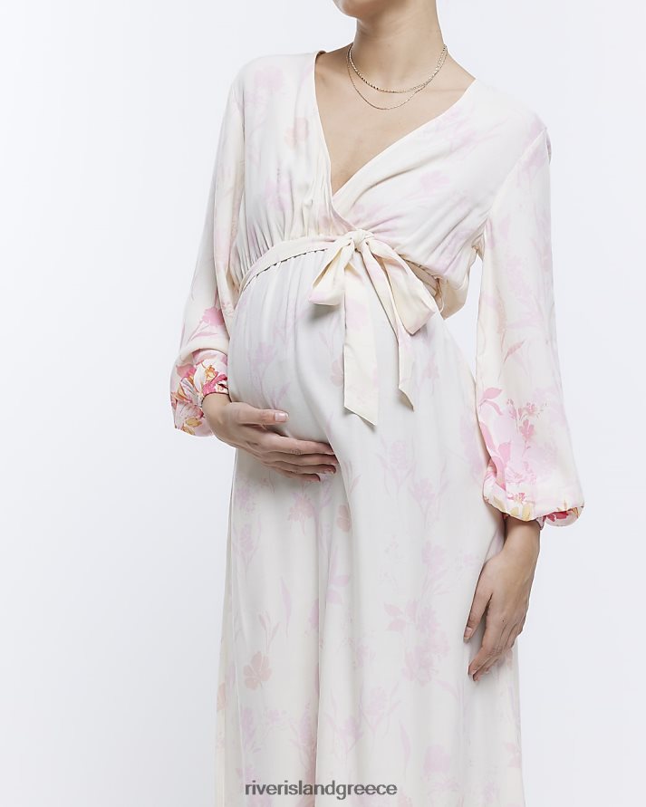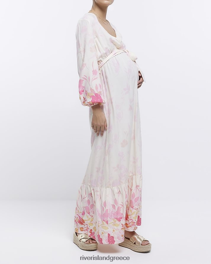 River Island ενδύματα ροζ γυναίκες λουλουδάτο μάξι φόρεμα μπροστινό περιτύλιγμα εγκυμοσύνης B6N8X5356