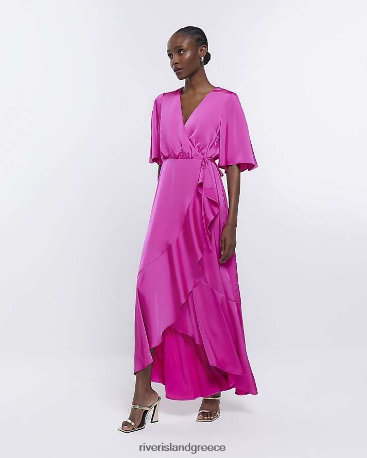 River Island ενδύματα ροζ γυναίκες μάξι φόρεμα με τυλιχτό καταρράκτη B6N8X1811