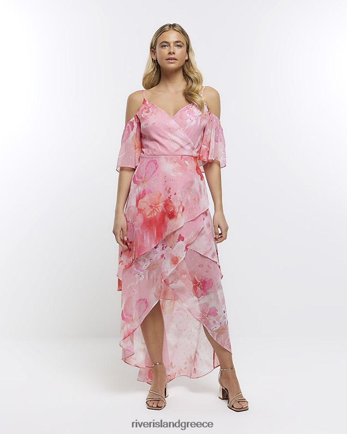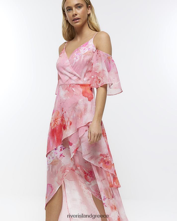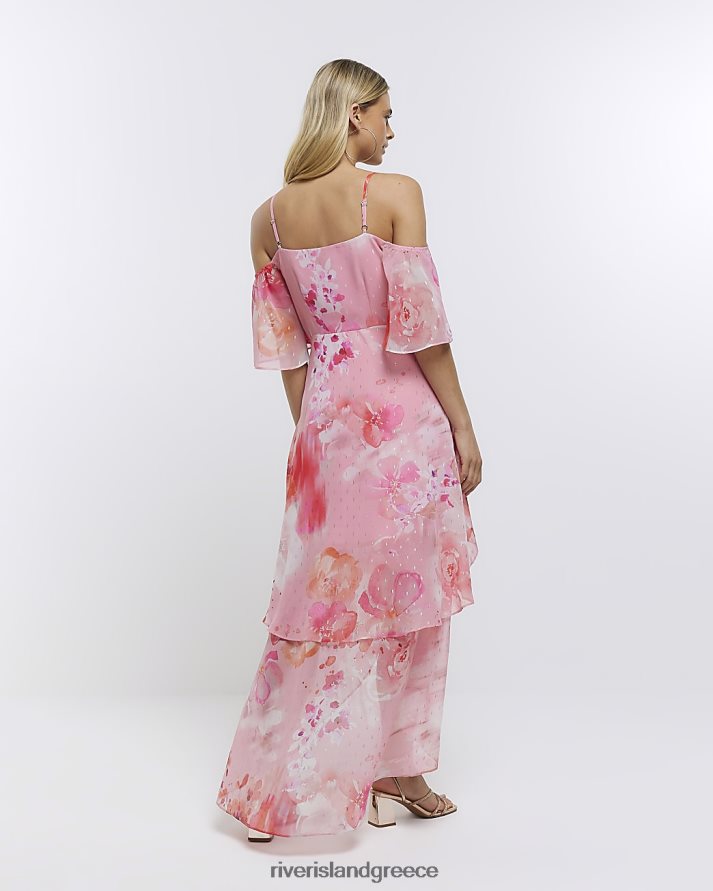 River Island ενδύματα ροζ γυναίκες Μαξι φόρεμα σιφόν φλοράλ smock B6N8X4749