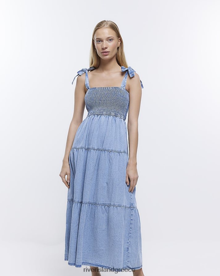 River Island ενδύματα τζην γυναίκες petite αμάνικο smock μάξι φόρεμα B6N8X5326
