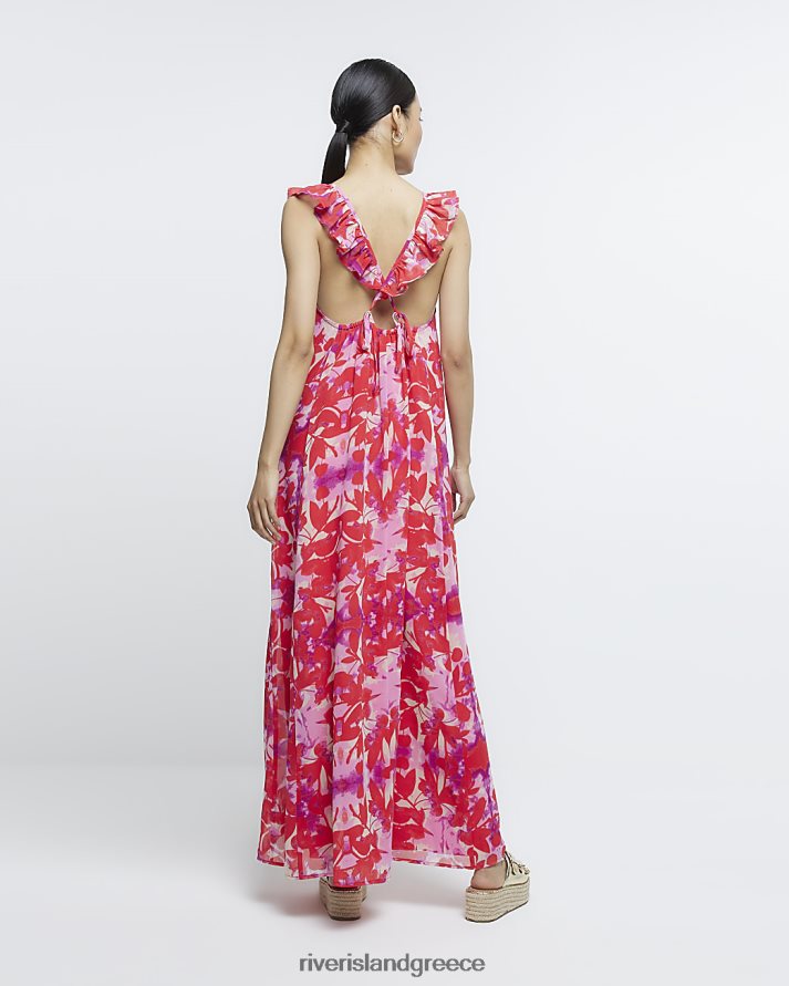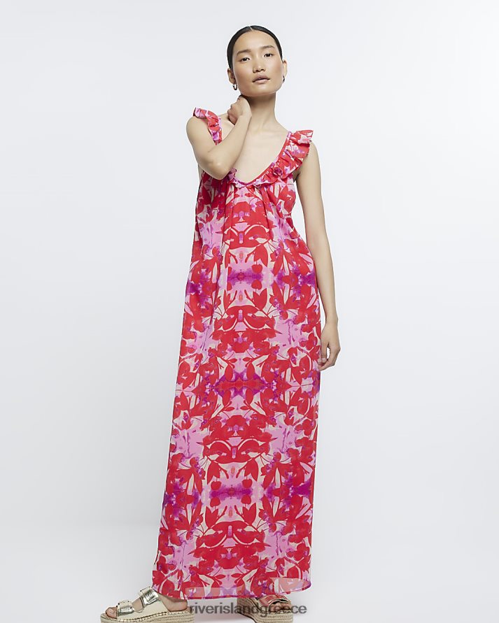 River Island ενδύματα το κόκκινο γυναίκες floral slip maxi φόρεμα B6N8X4799