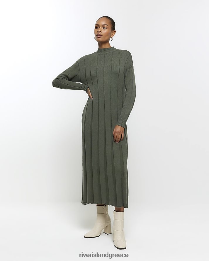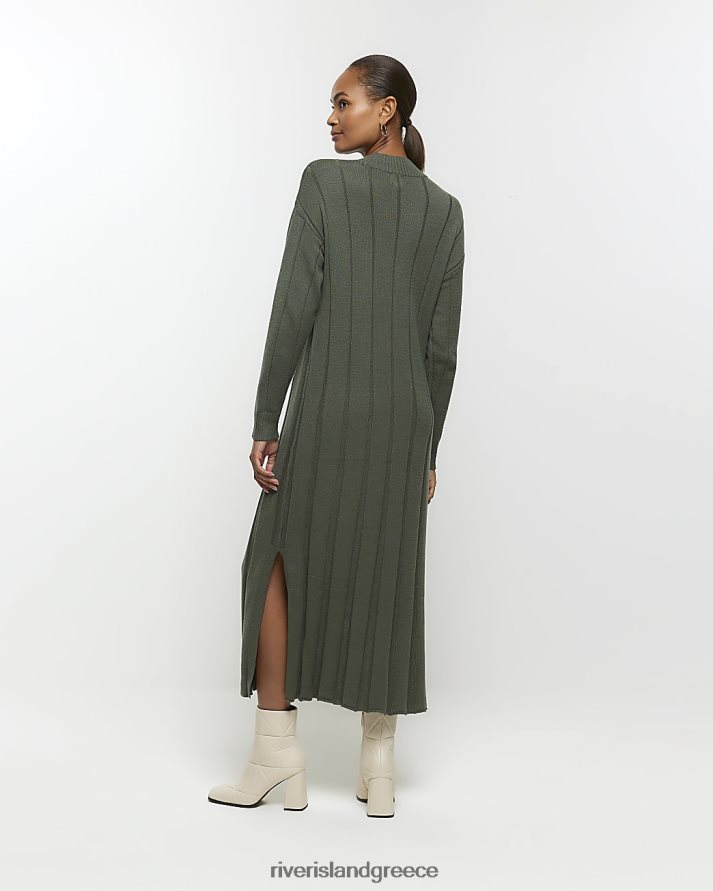 River Island ενδύματα χακί γυναίκες μάξι φόρεμα με ψηλό λαιμό B6N8X60