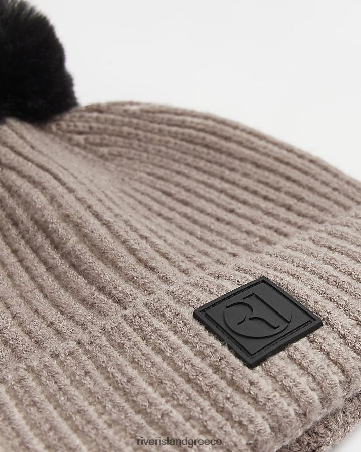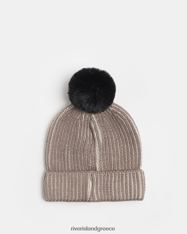 River Island αξεσουάρ πέτρα αγόρια mb ραβδωτό καπέλο πομ πομ μπανί B6N8X6913